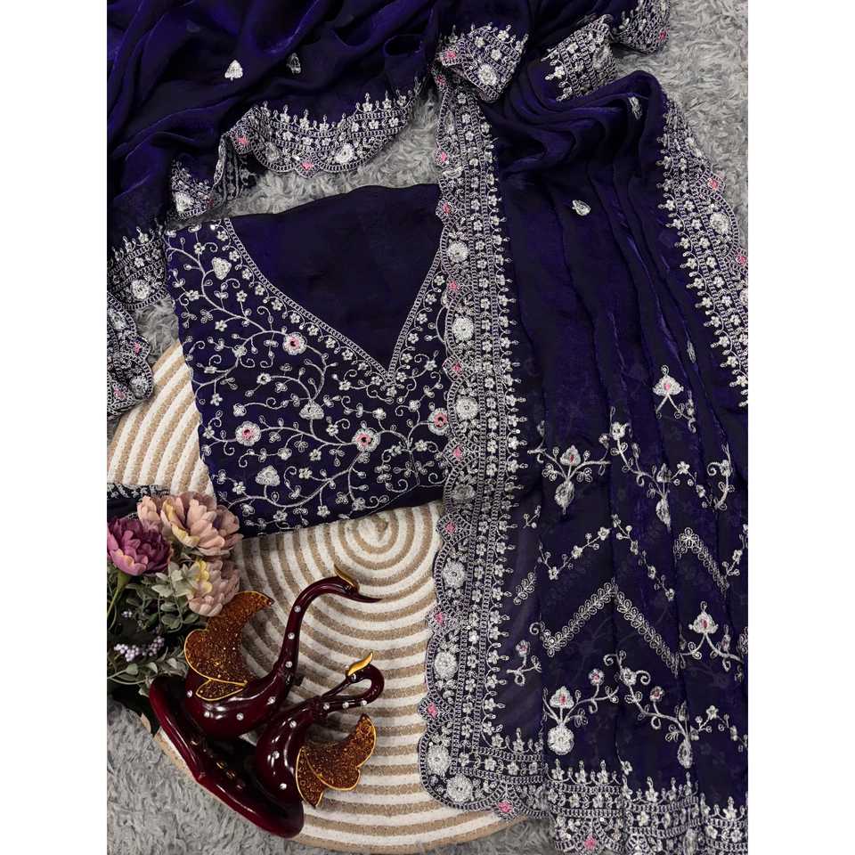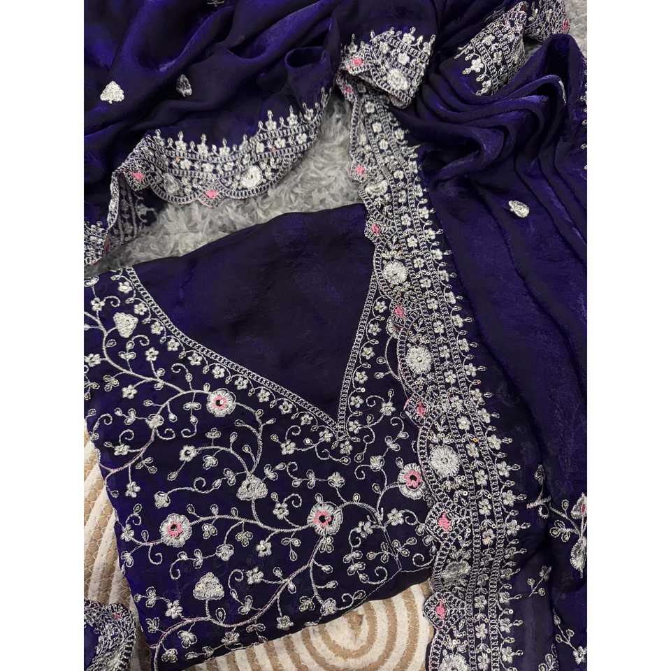 Designer Beautiful Saree with Sequins and Zari Embroidery Work Indian & Pakistani Clothing
