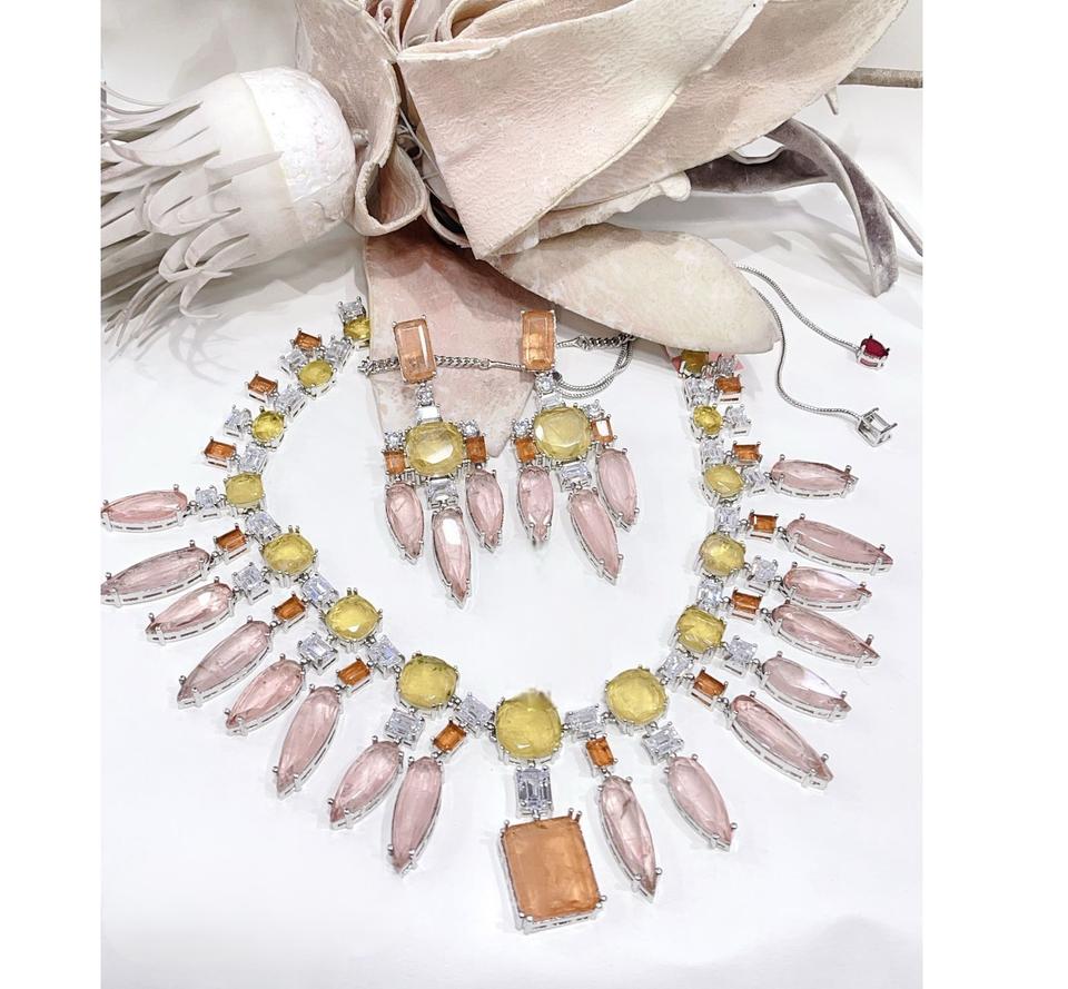 Designer Best Quality CZ Statement With Doublet Stones Look Necklace and Earrings Set for Women For Engagement Anniversary