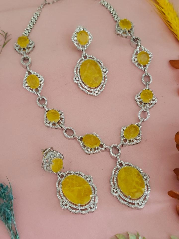 Designer Best Quality Silver Finish AD Stones Look Necklace Set With Earrings For Wedding Party Wear Collection For Women