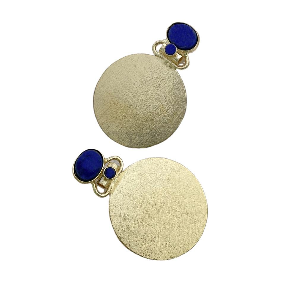 Designer Big Stud Earring with Lapis Gemstone Gold Plated Brass Jewelry Bezel Setting Inlay