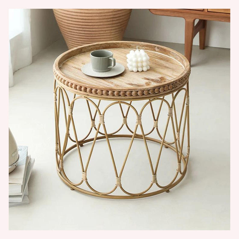 Designer Boho Style Rattan Coffee Table Adjustable Height Wicker Living Room Table with Durable Metal Legs
