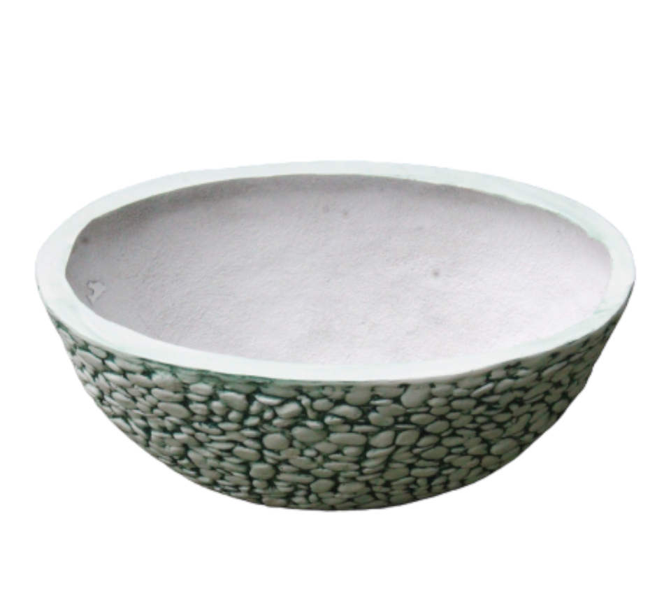 Designer Bowl-Shaped Fiberglass White Pebble Floor Planters for Garden & Home Malls Unique Attractive Flower Vases