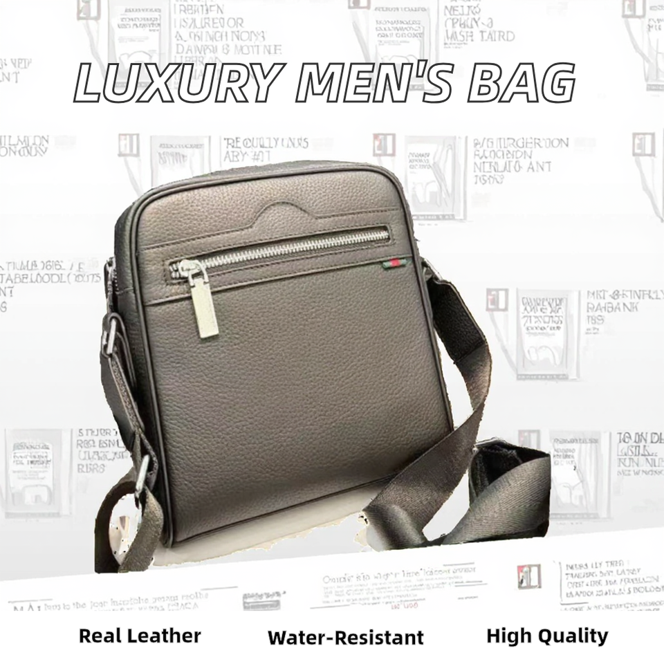 Designer Brand Men's Genuine Leather Messenger Bag High Quality Crossbody Shoulder Handbag with Polyester Lining-Black
