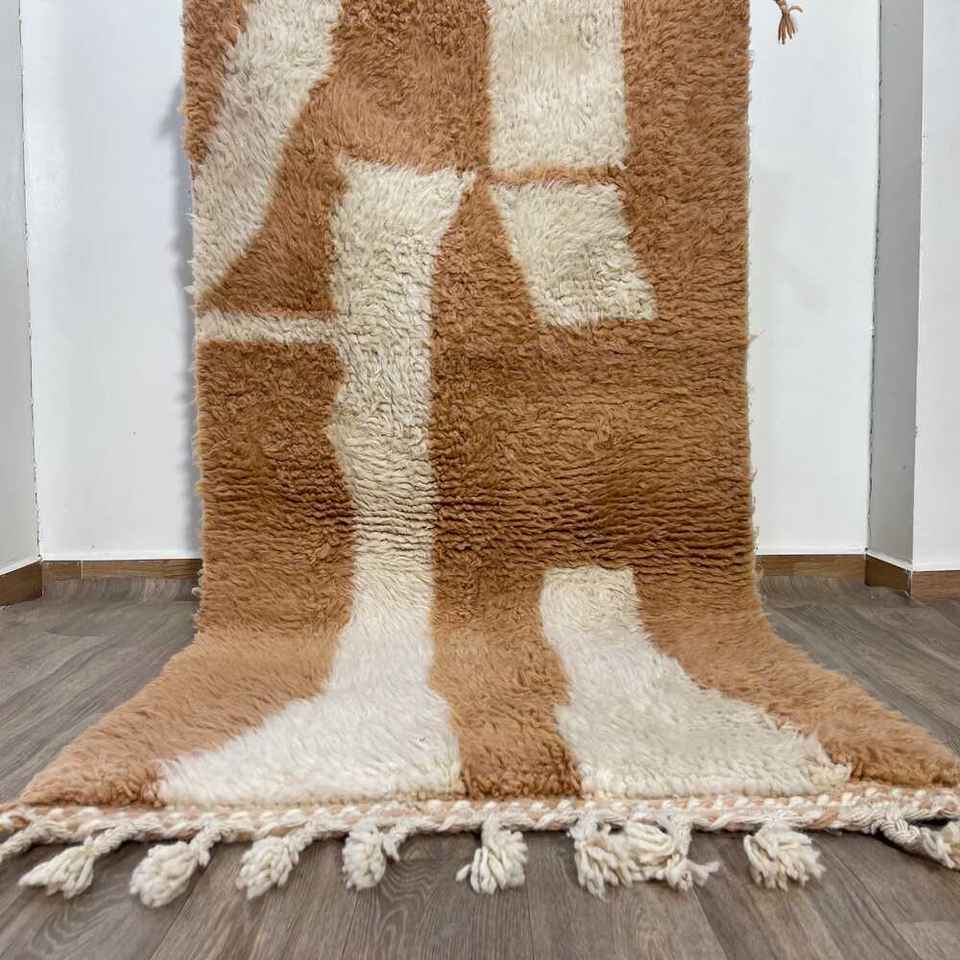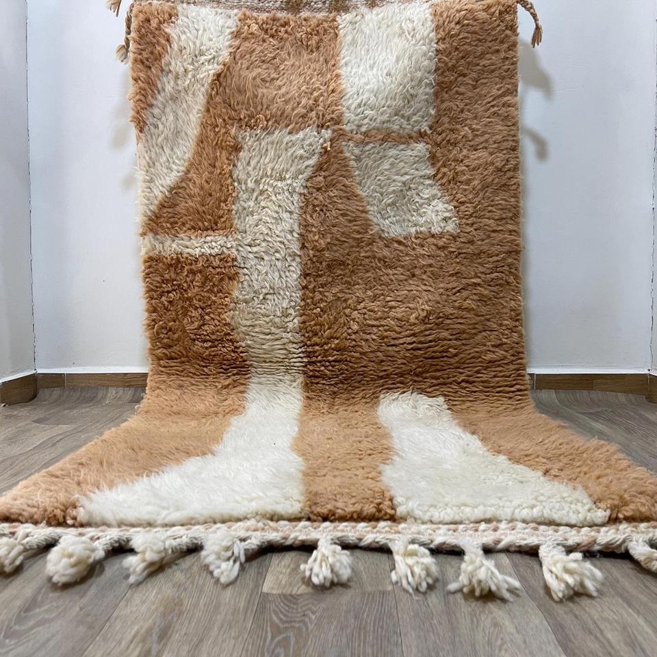 Designer Brown and White Color Carpets Hand Block Print Pattern Dhurries 100% Cotton Material Carpets for Home Living Room Decor
