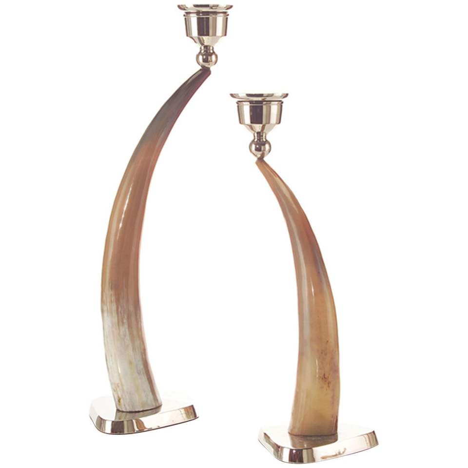 Designer Buffalo Horn Candle Stand With Natural Look Tribal Art Ox Horn Candle Holder For Themed Decor