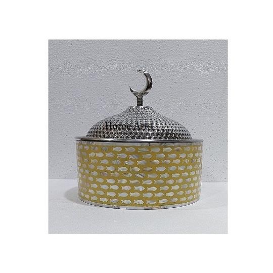 Designer Casserole Dish Wood And MOP Work Hot Pot With Hammered Lid Food Serving Pot For Home And Hotel Usage