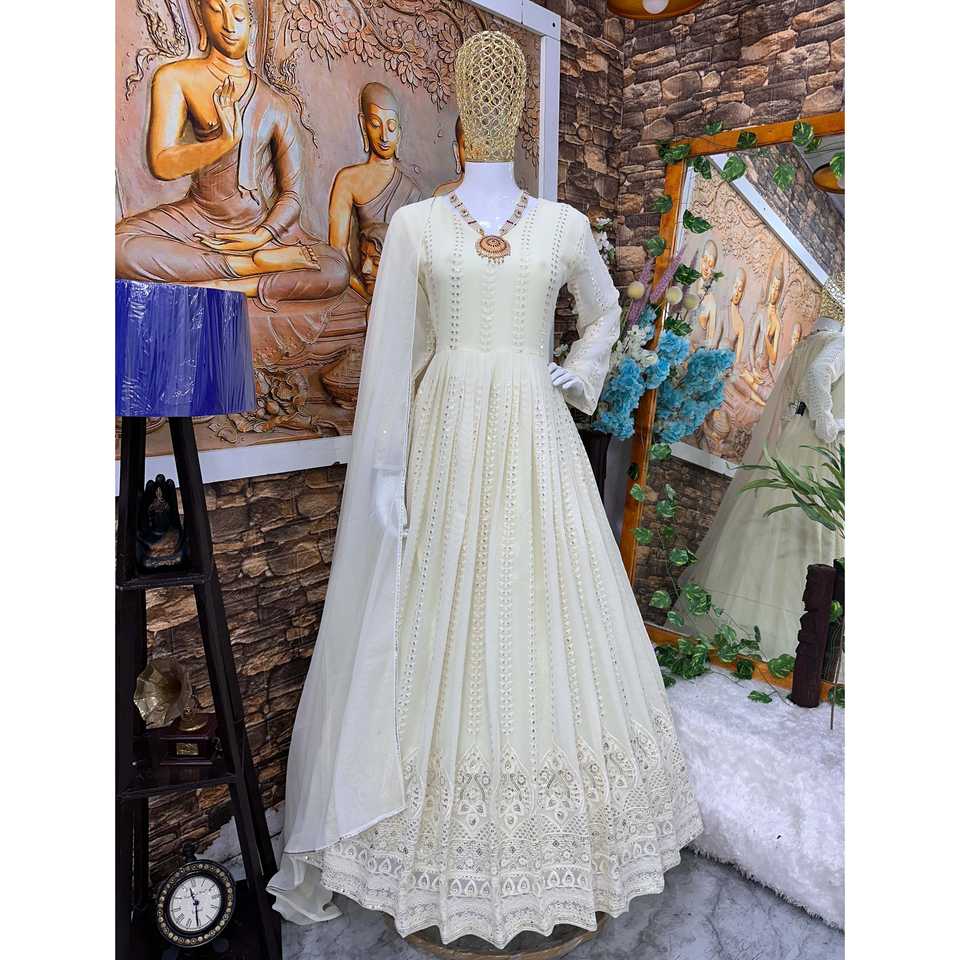 Designer Chikankari Gown and Pant with Dupatta Evening Dresses for Party Wear Stylish and Elegant Look