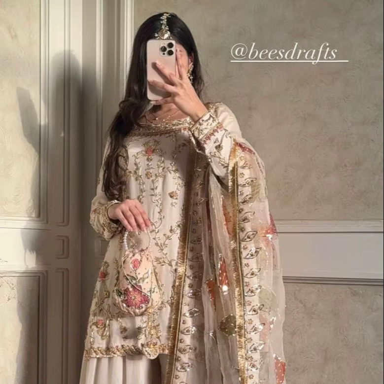 Product Name:Chinon Silk Embroidery Sequence Work Top & Sharara With Dupatta