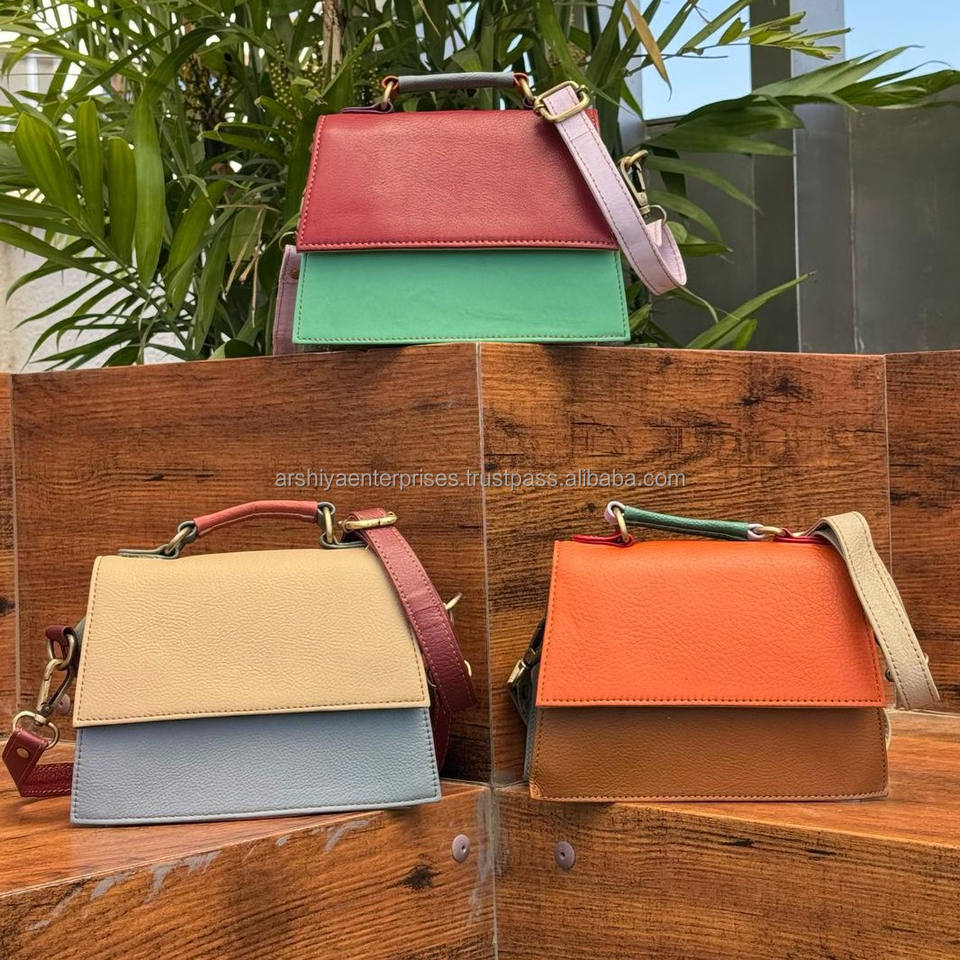 Designer Colored Recycled Leather Small Satchel Crossbody Handled Bag for Women Shoulder Bags Fair Trade Handmade & Eco-Friendly