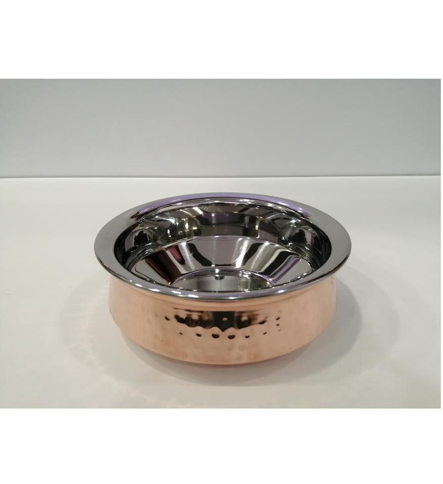 Designer Copper & Stainless Steel Handi with Lid Hammered Serving Bowl Dish Small Premium Classic Look Amazing Fancy Bowl