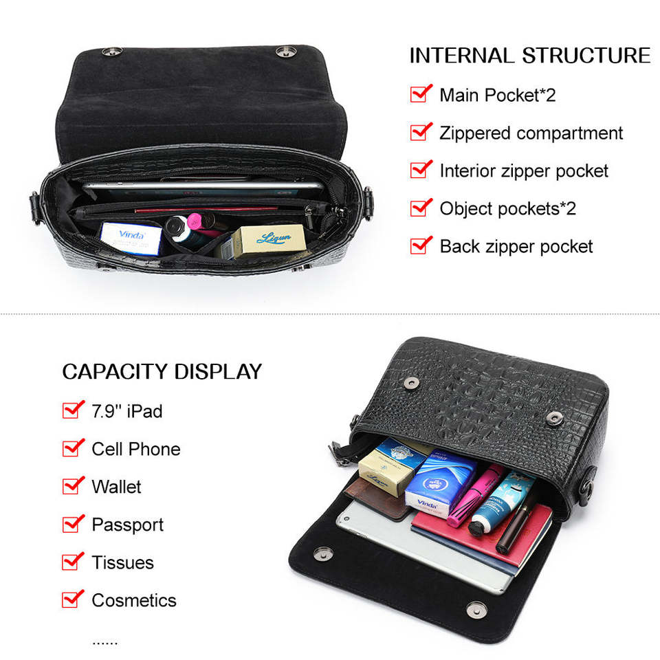 Designer Crocodile Print Leather Messenger Bag Small Handbag Genuine Leather Ladies Crossbody Bag Shoulder Bag for Women