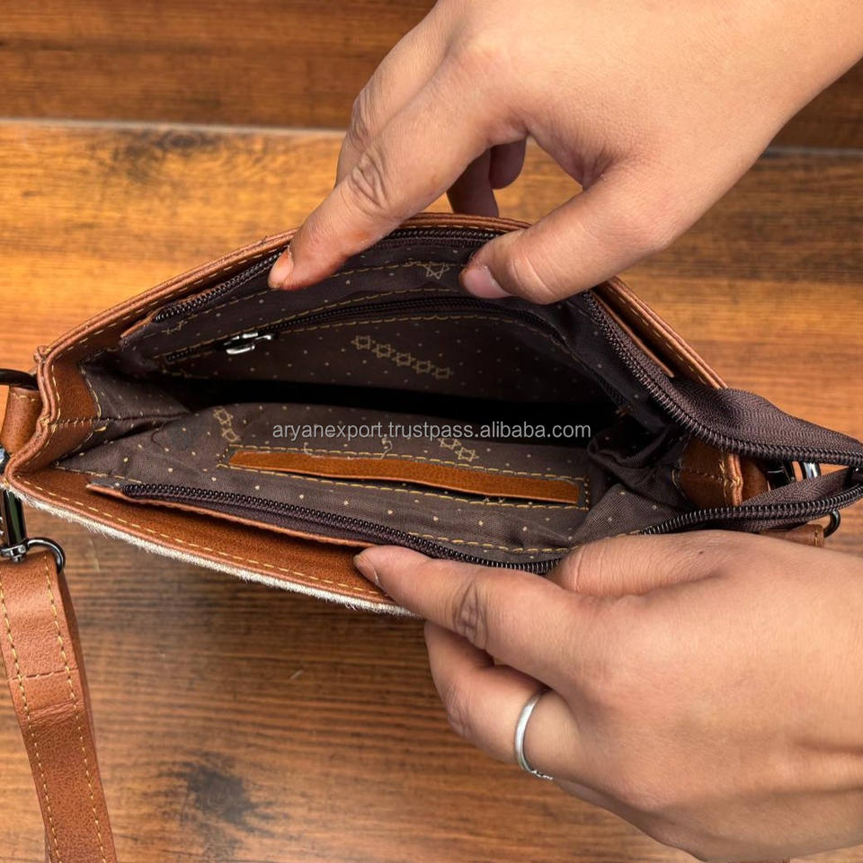 Genuine Cowhide Leather Zipper Crossbody Handbags