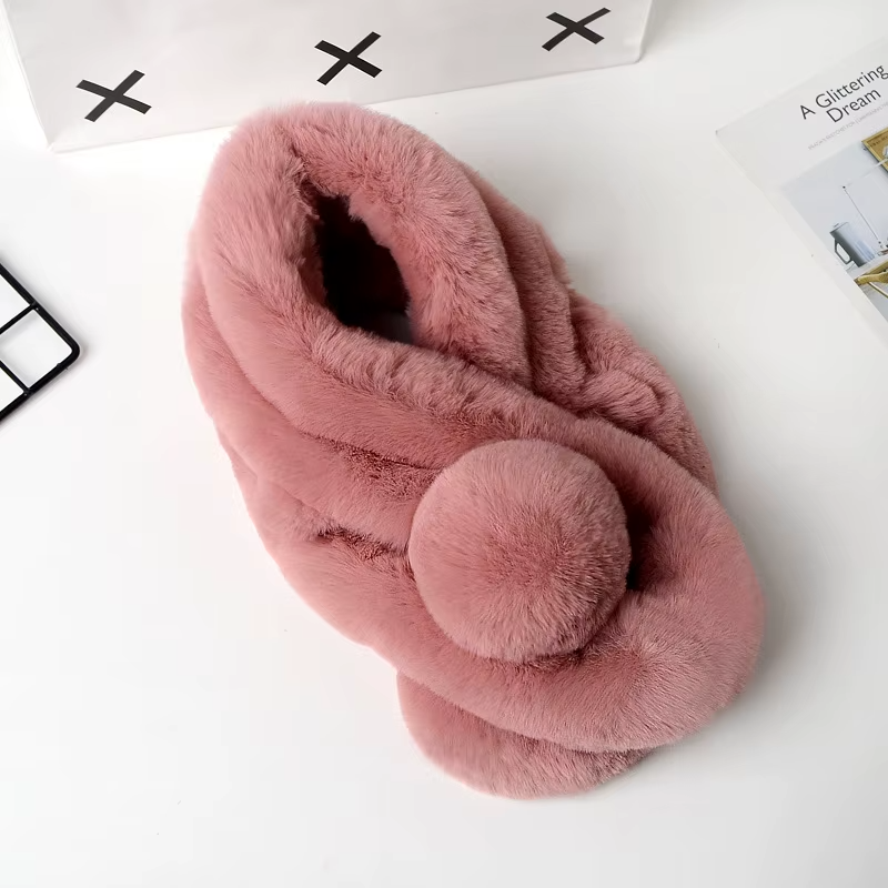 Designer Custom Winter Scarf for Women Artificial Faux Rabbit Fur Ball Muffler