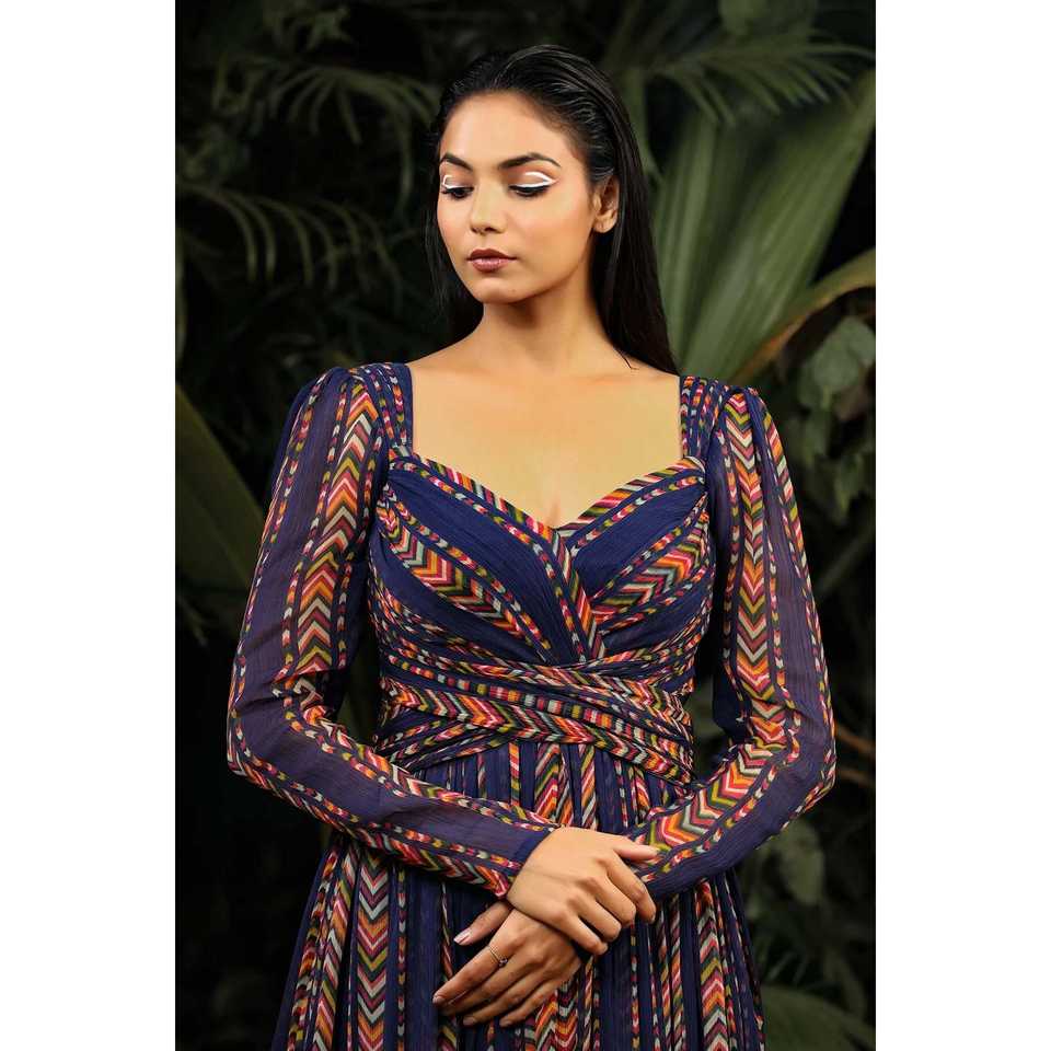 Designer Digital Print Prom Dresses Party Wear Gown with Stylish Look
