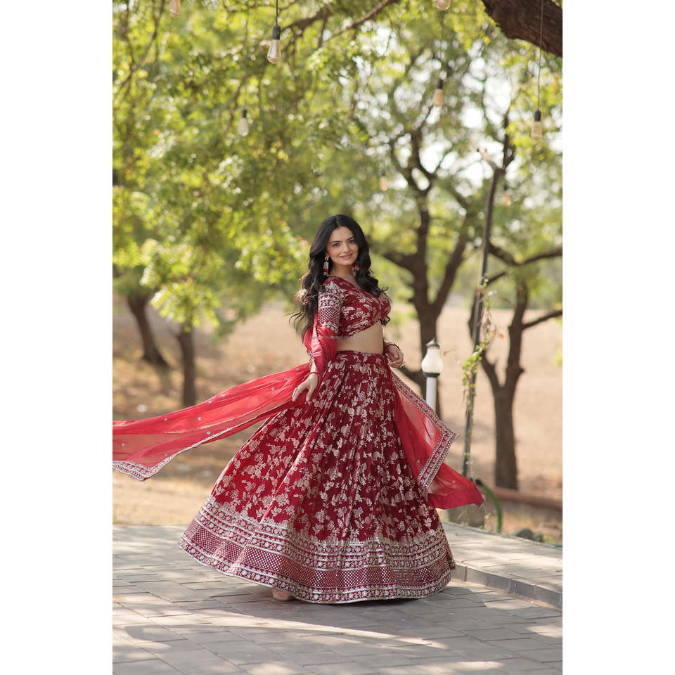Designer Dyeable Pure Viscose Jacquard Fabric Lehenga Choli & Dupatta Set