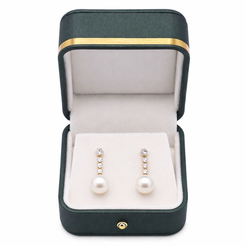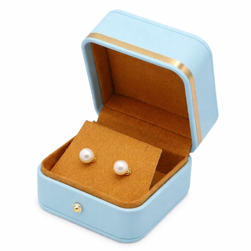 Designer Earring Box High end Hinged PU Leather Jewelry Gift Box Velvet Insert Foil Stamping Logo for Jewelry Retail Packaging