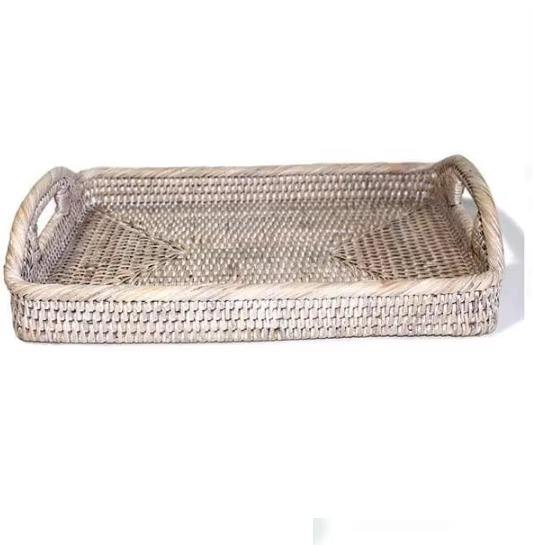 Designer Edge Rattan Tray Stylish Woven Tray for Serving Snacks Drinks Breakfast Tea Coffee Organizing Kitchen Essentials