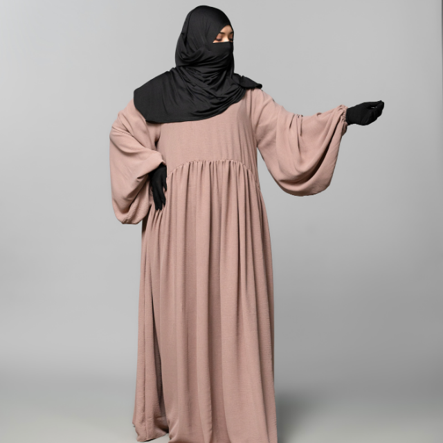 Product name:Ruffle Abaya with Elastic Balloon Sleeves