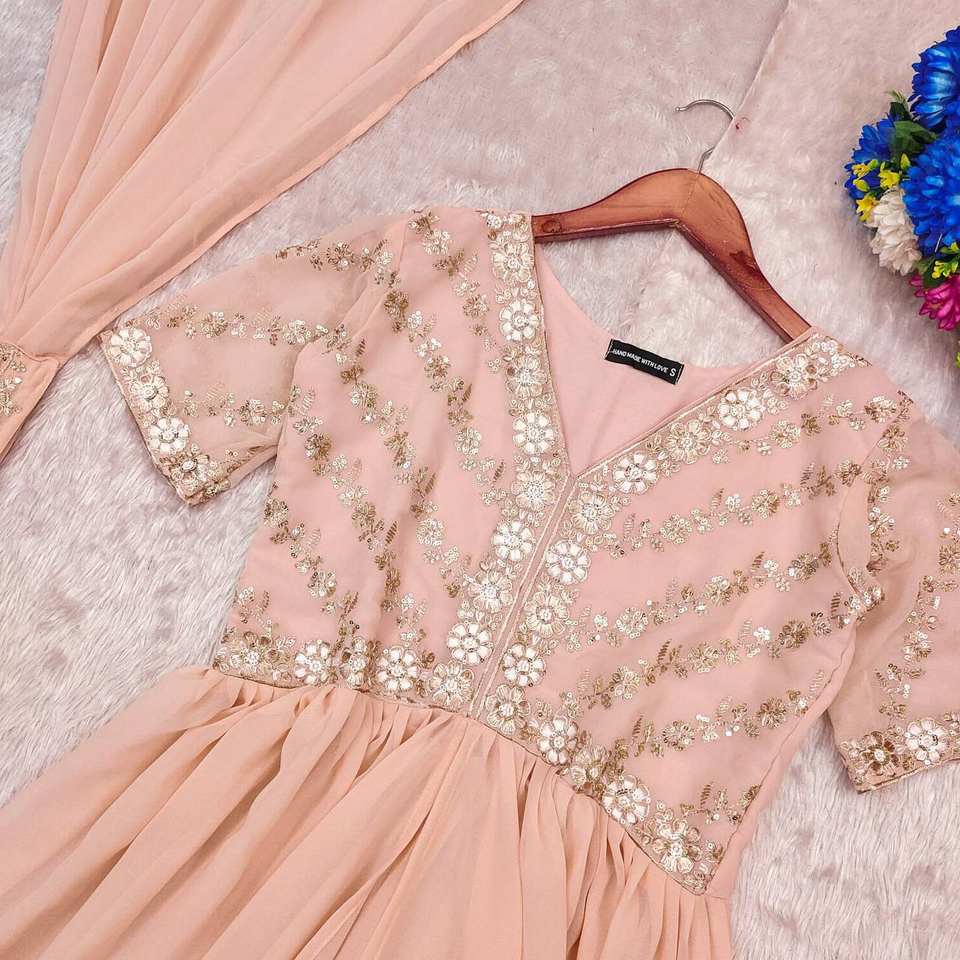 Designer Elegant Women's Traditional Anarkali Salwar Gown with Embroidered Silk Dupatta for Weddings or Work