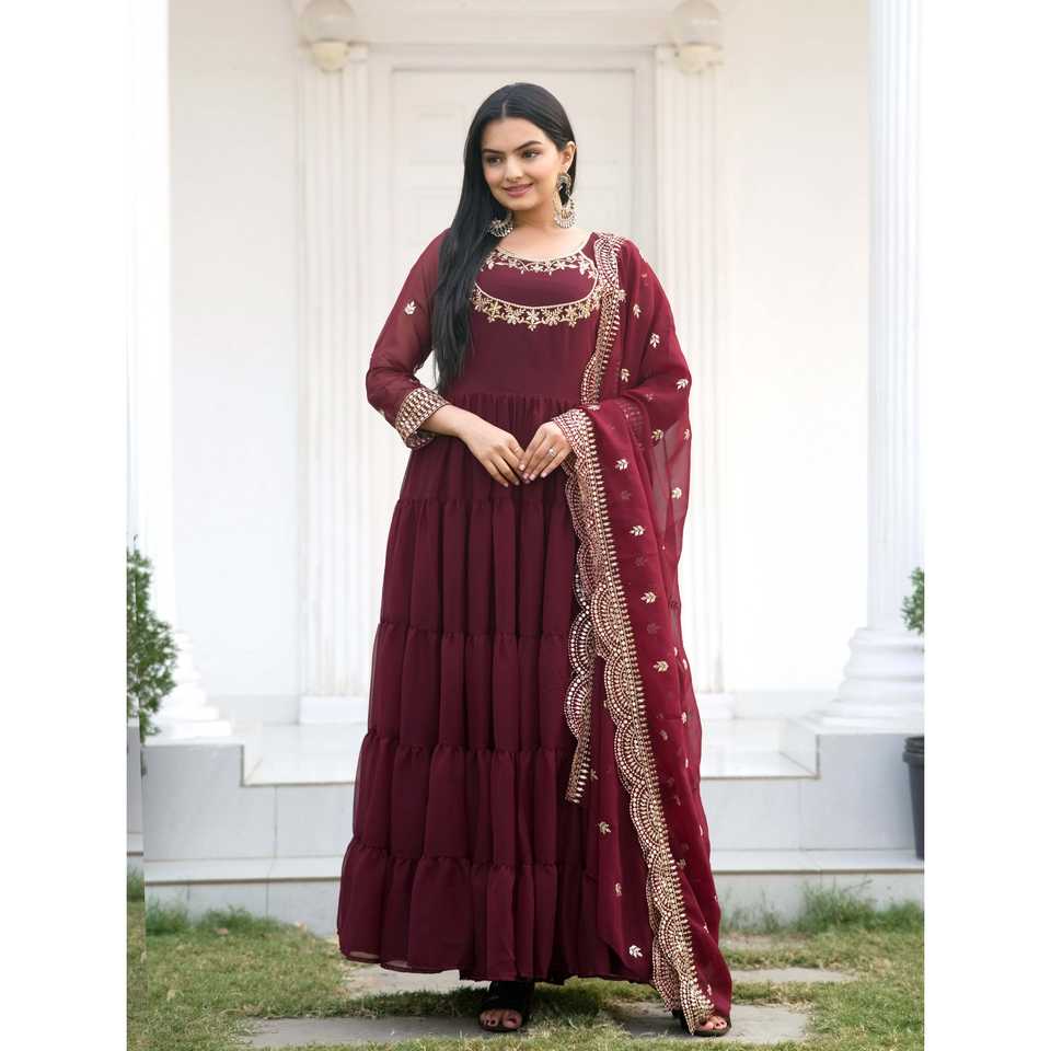 Designer Embroidered Georgette Gown with Sequence Embroidered Work for Career Dresses