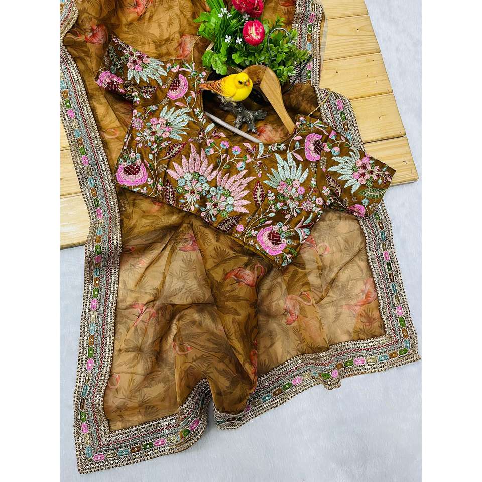 Designer Embroidered Saree with Multi-Color Thread Work Beautiful Traditional Chinese Clothing