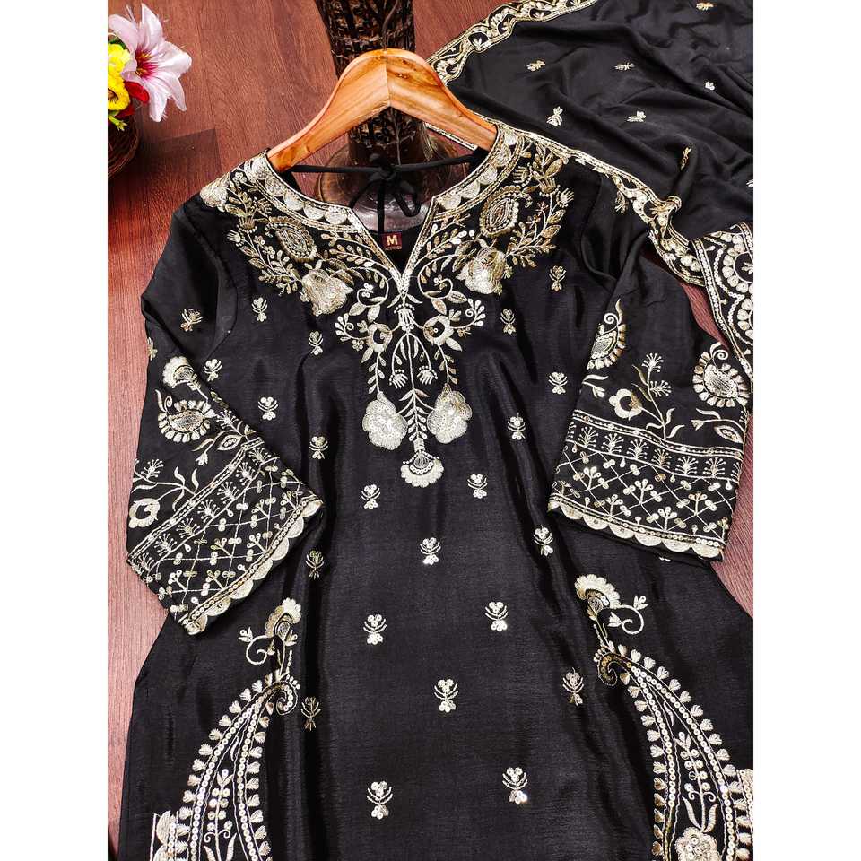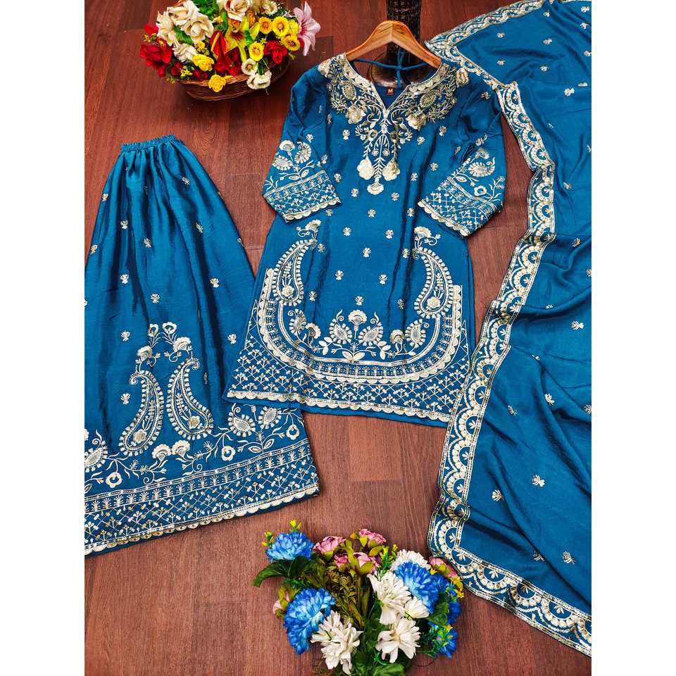 Designer Embroidered Traditional Chinese Clothing Chinon Sharara Suit and Dupatta