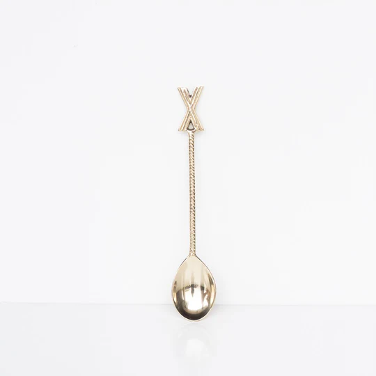 Designer Brass Long Handle Embossed Golden Dessert & Tea Spoons for Home Hotel Wedding Use-Dishwasher Safe