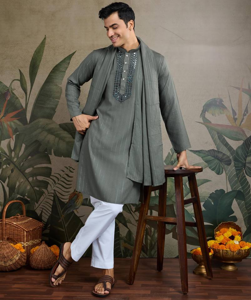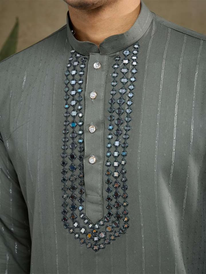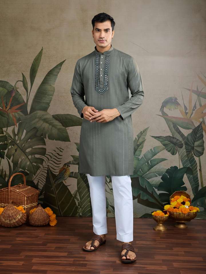 KURTA Work:SALF DESIGN JARI WORK ,REAL MIRROR WORK