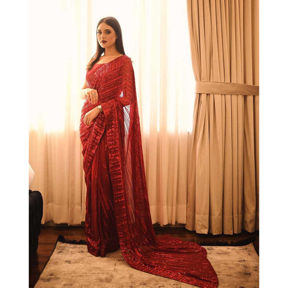 Designer Evening Dress Beautiful Sequence Embroidery Work Saree for Parties