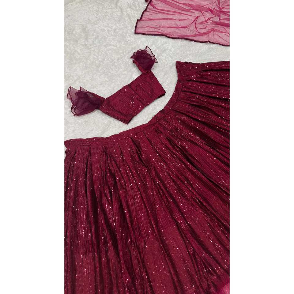 Designer Evening Dresses Elegant Party Wear Lehenga Choli with Intricate Net Ruffle Border Work