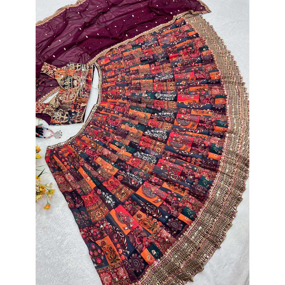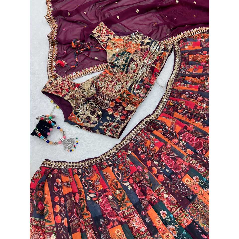 Designer Evening Dresses-Multi Needle Work Lehenga Choli for Parties