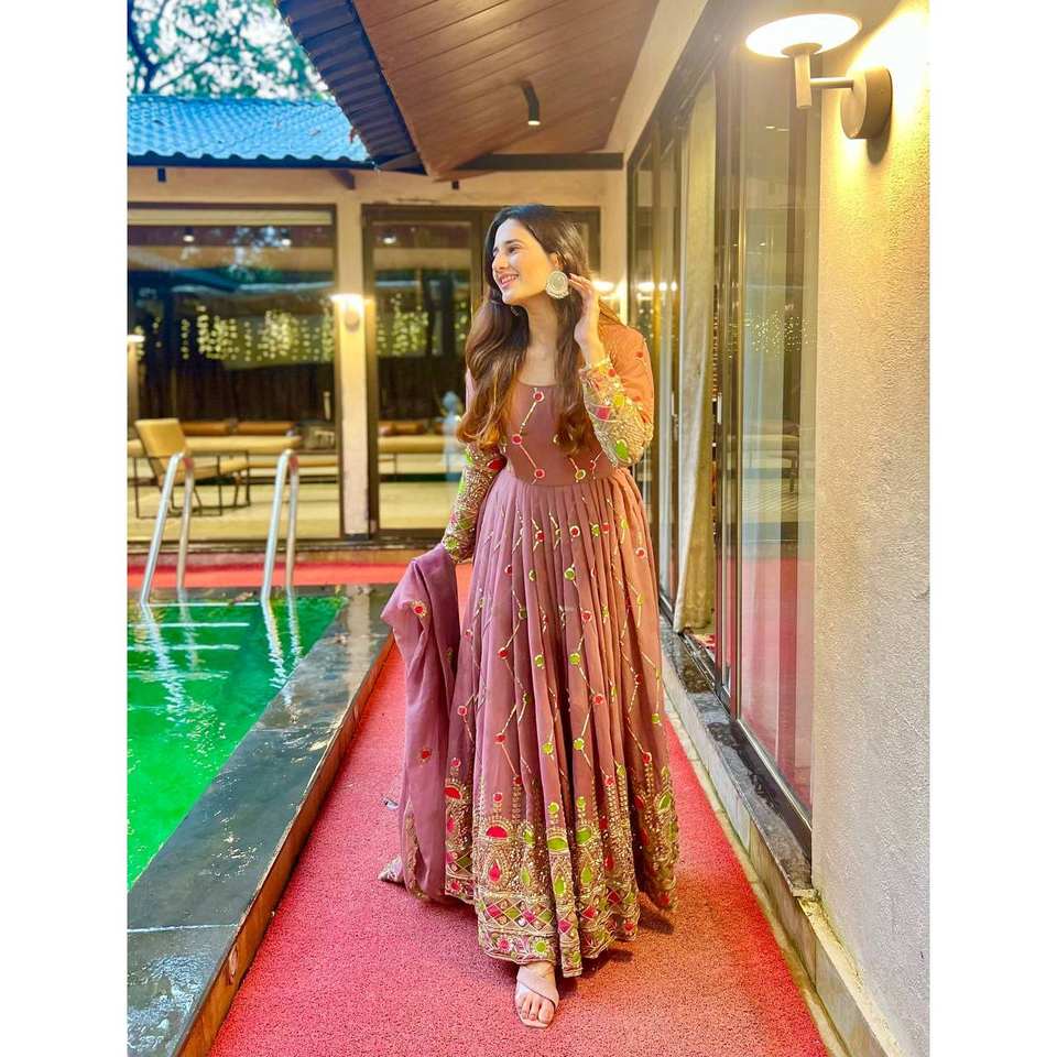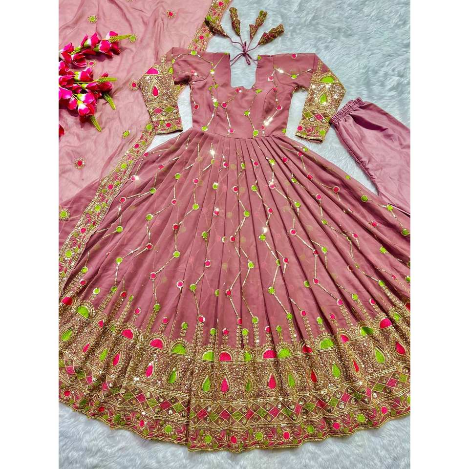 Designer Fancy Style Anarkali Gown and Pant with Dupatta Modest Evening Party Wear