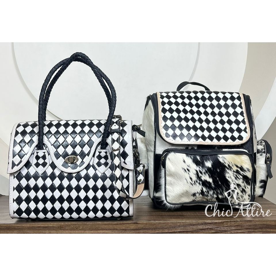 Product name:Hand Tooled Checkered Leather Tote Bag & Diaper Backpack