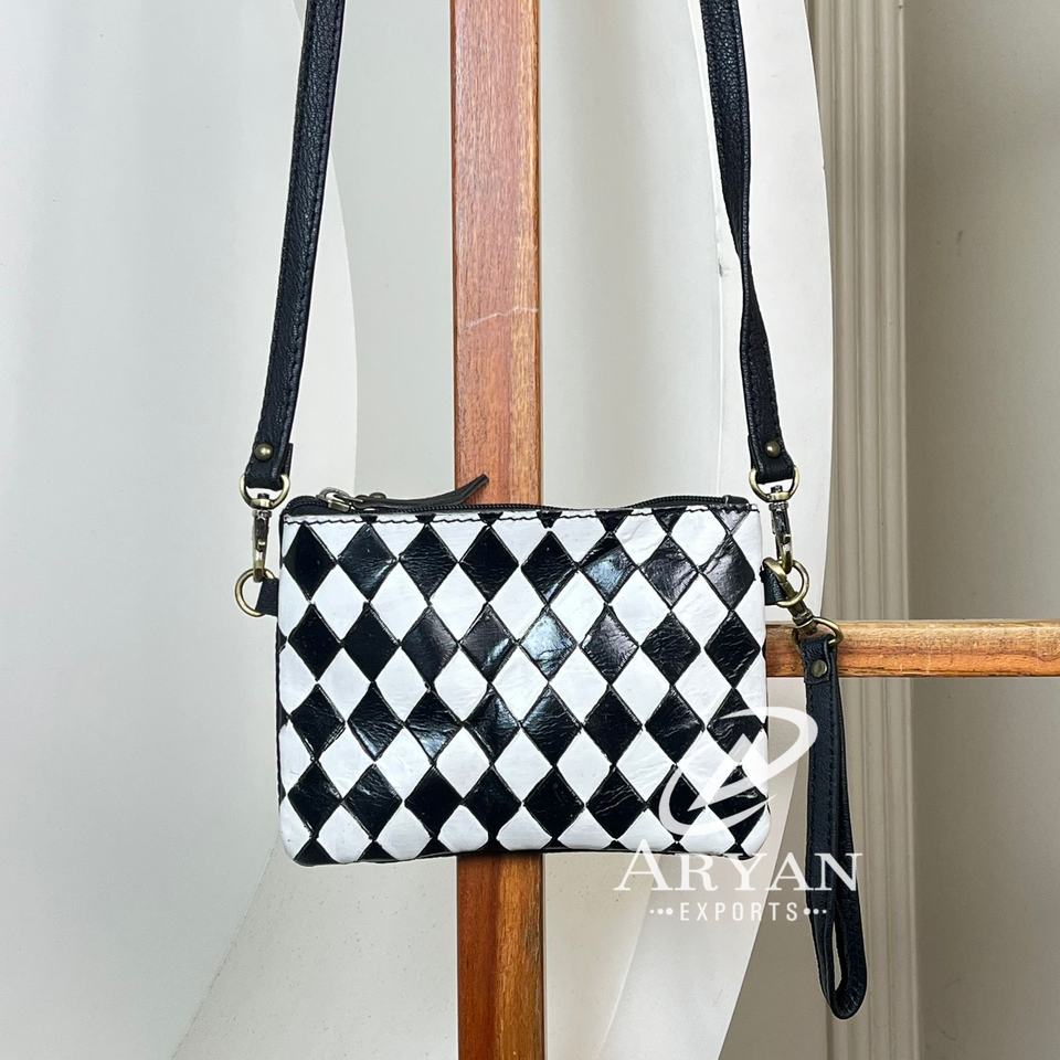 Product name:Checkered Pattern Genuine Leather Crossbody Mini Bag