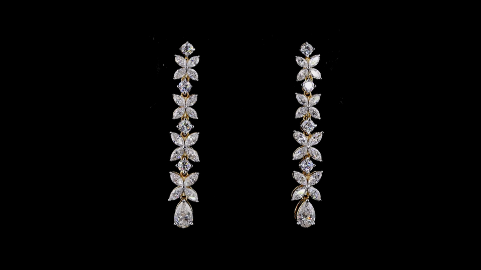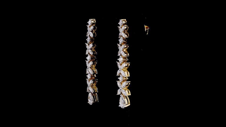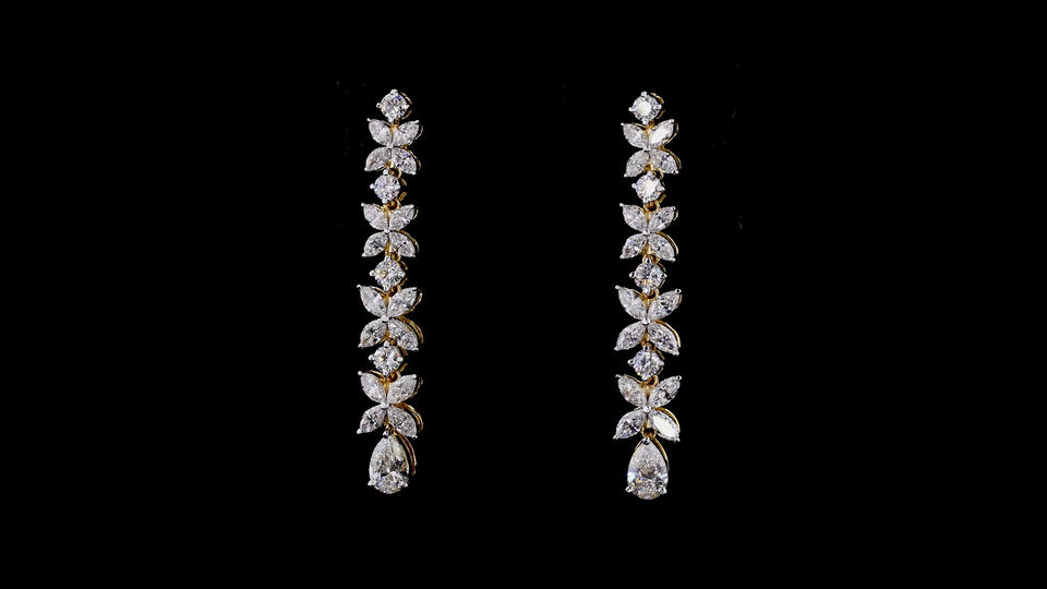 Designer Floral Vine Lab Grown Diamond Long Earrings | Yellow Gold Luxury Wedding Jewelry