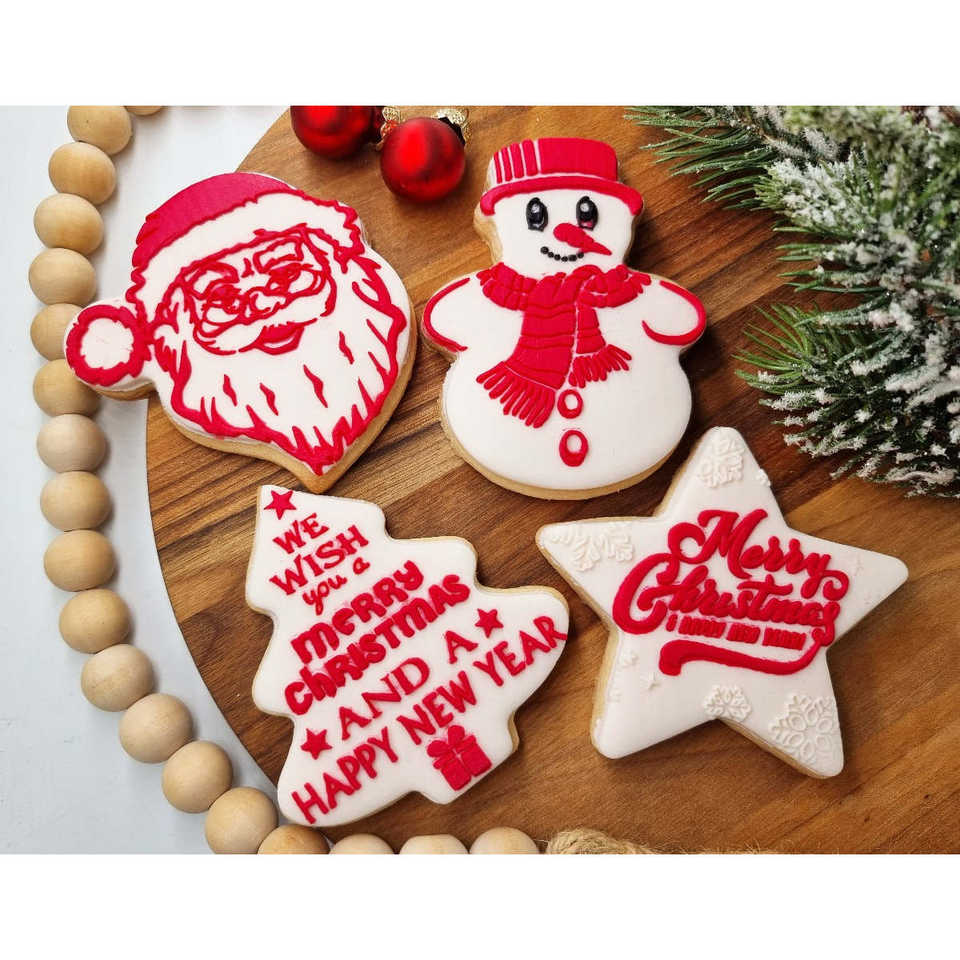 Designer Fondant Embosser Stamp Set 4pcs Christmas and Cookie Cutter for Cake Decorating