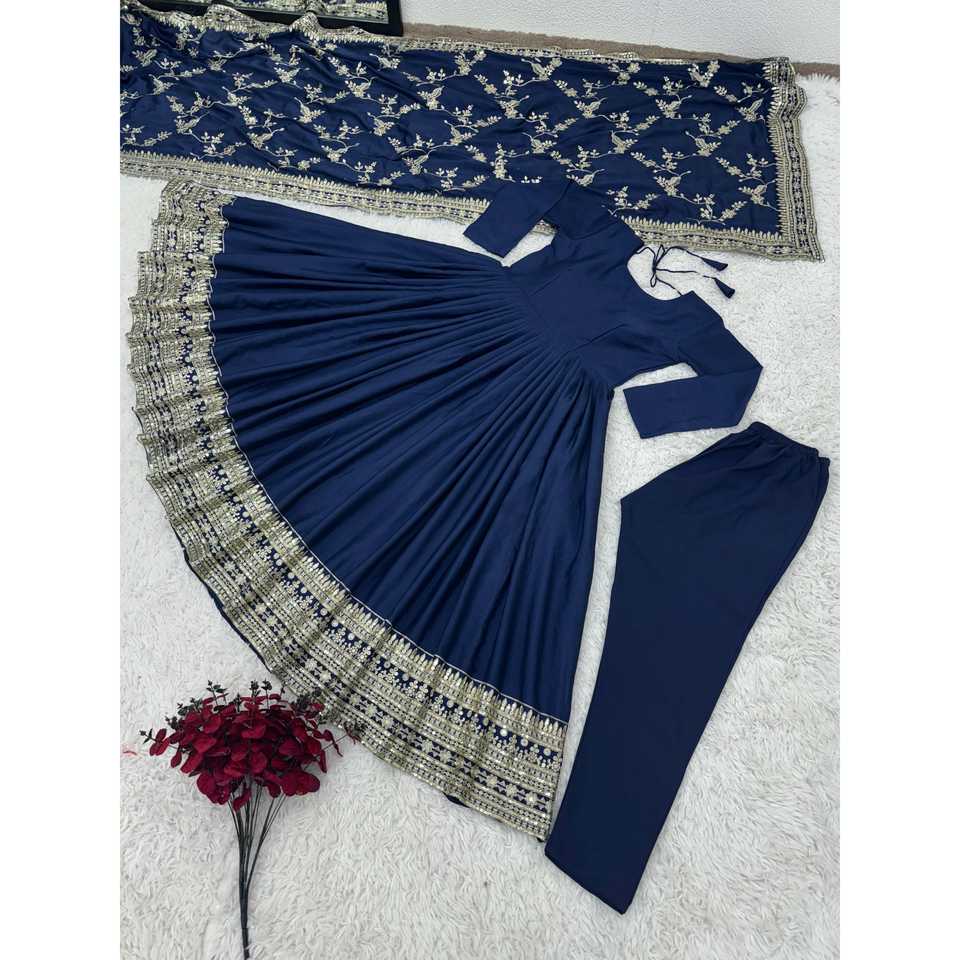 Designer Full Heavy Embroidery Sequence Work Gown Party Wear Evening Dress with Pent and Dupatta for Women