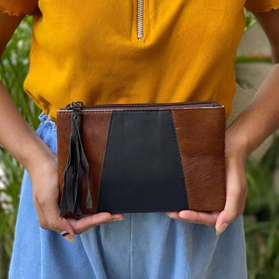 Designer Genuine Cowhide Leather Tassel Pouch for Women Fashionable Trendy High Quality Luxury Credit Card Holder Clutch Purse