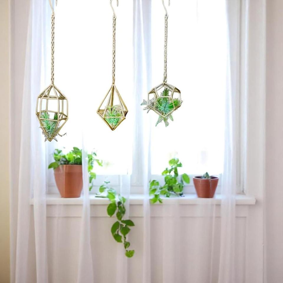 Designer Geometric Gold Finished Metal Hanging Planter For Indoor Plant Arrangement Contemporary Home Styling And Decorative