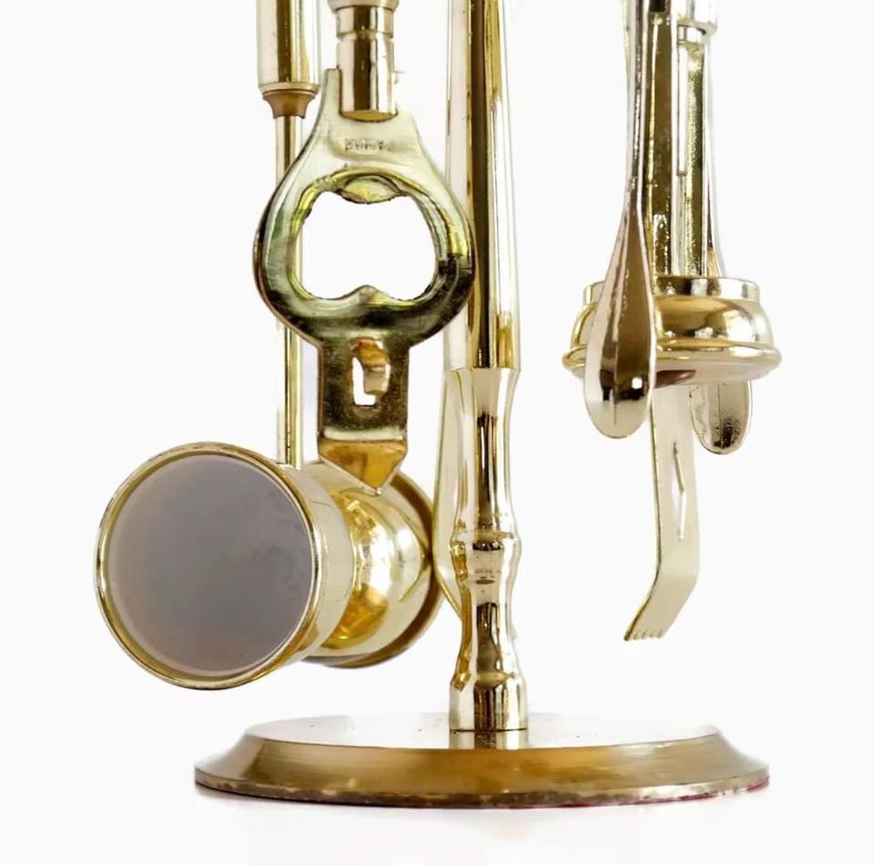 Designer Gold Bar Accessories Tool Set With Stand Stainless Steel Cocktail Making Tools For Stylish Entertaining And Gifting
