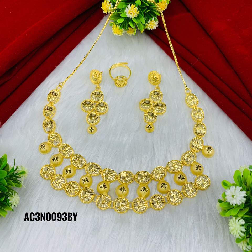 Designer Gold Plated Short Necklace Set One Gram Brass Fashion Jewellery Flower Pattern Box Chain Parties Gifts Anniversaries