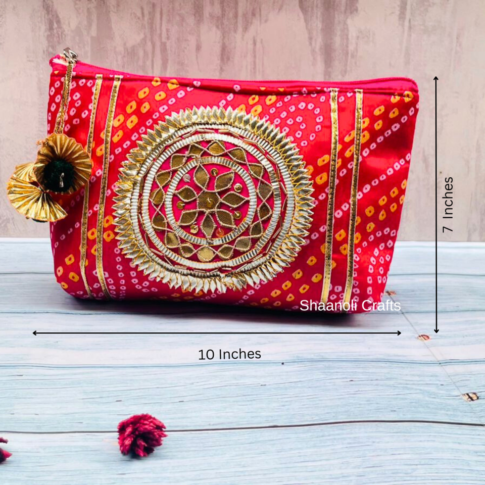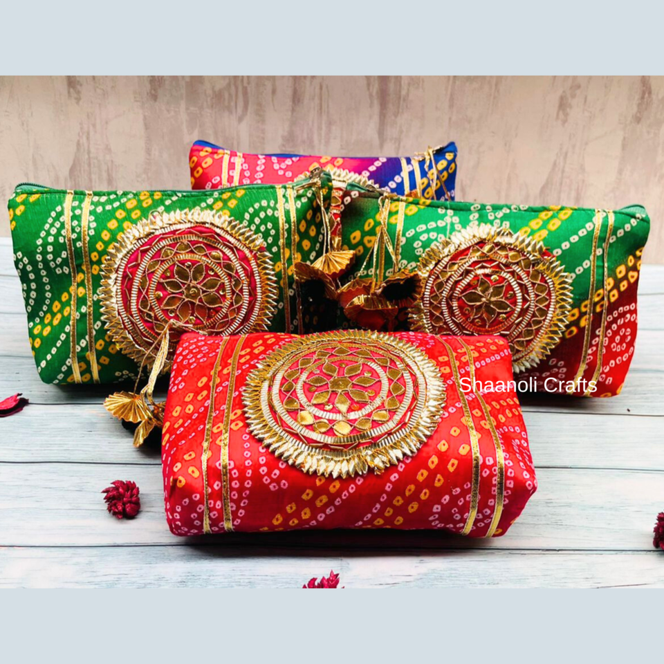 Designer Gotta Patti Handbags Zipper Closer Pouches Purses Ethnic Embroidered Purses for Wedding Party , Hldi ,mehendi Favor