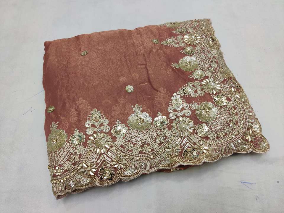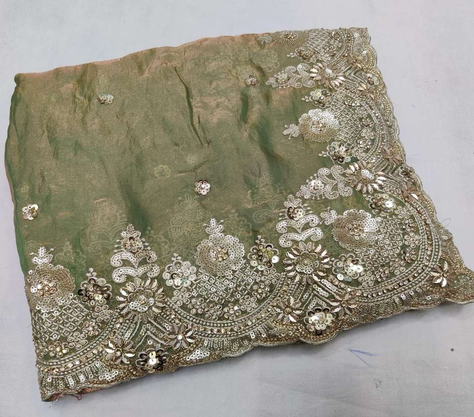 Designer HAND SEQUENCE BORDER AND BUTTA ON FANDE SILK border silk saree
