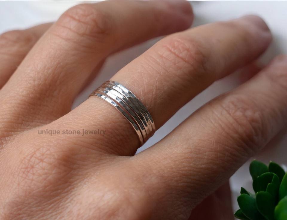 Designer 925 Sterling Silver Hammered Band Ring Beautiful Handmade Stacking Engagement for Girls Bezel Setting Inlay Technology