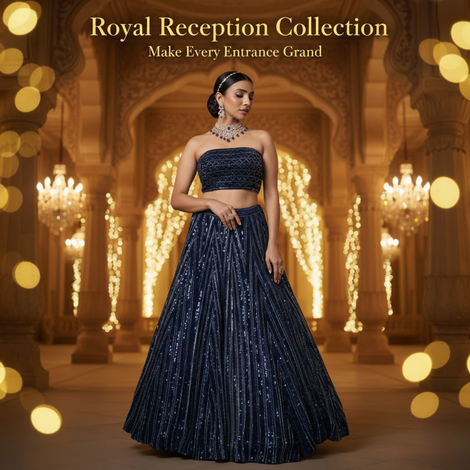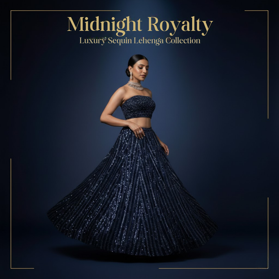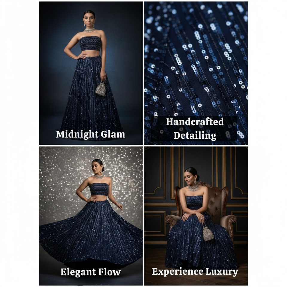 Designer Hand-Beaded Lehenga Choli for Girls | Shimmer Skirt with Sparkling Sequin Work for Cocktail & Sangeet