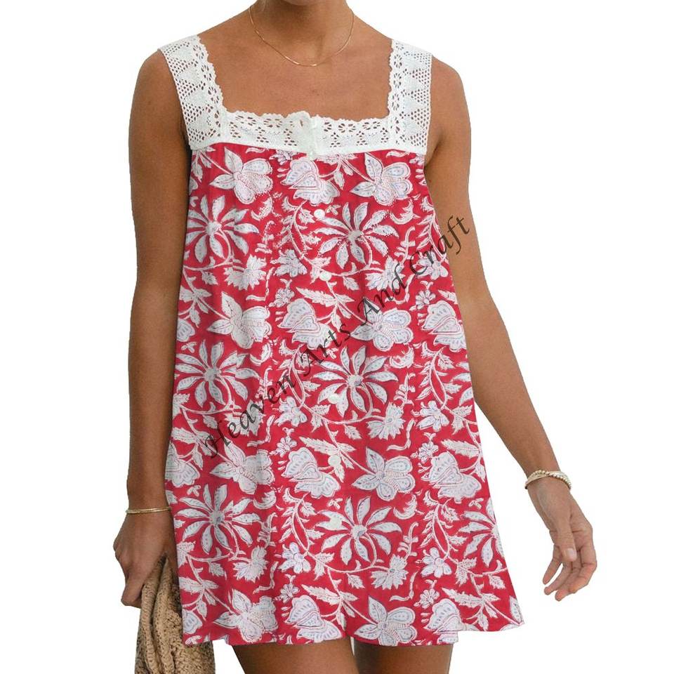 Designer Hand Block Printed Lace Top Women Western Wear Shirt Puff Sleeveless Lace Top India & Pakistan Clothing Girl's Everyday