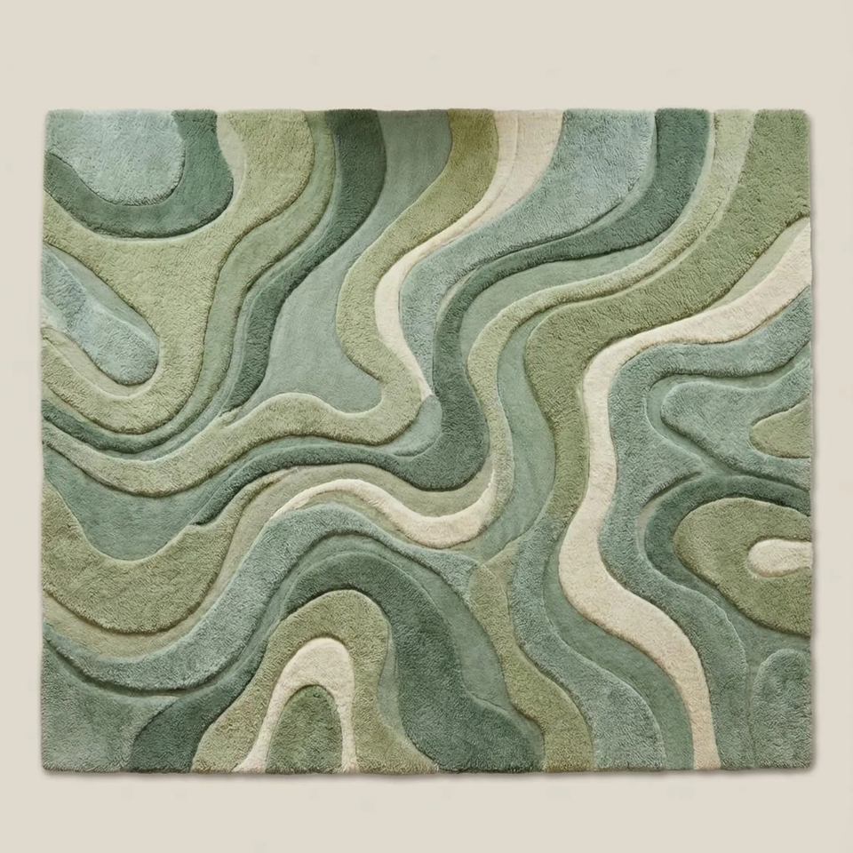 Designer Hand-Tufted Wool Rug | Retro Abstract Sculptural Pattern Area Carpet with Latex Backing Home Decor