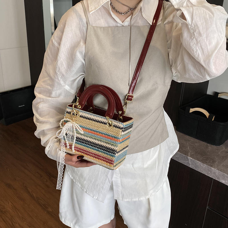 Designer Fashion Women's Square Shoulder Straw ZIP Closure Single Handle Small Tote Bags