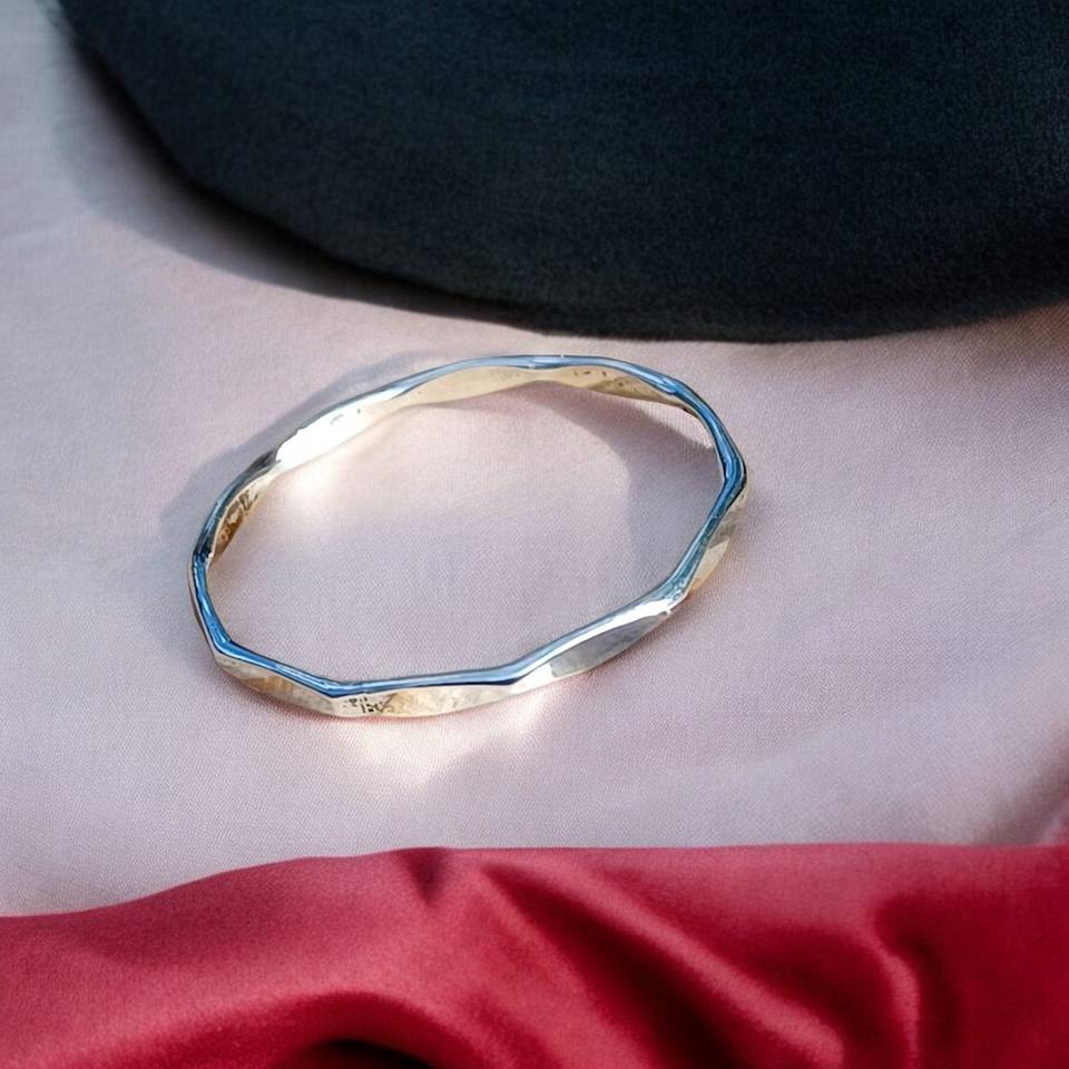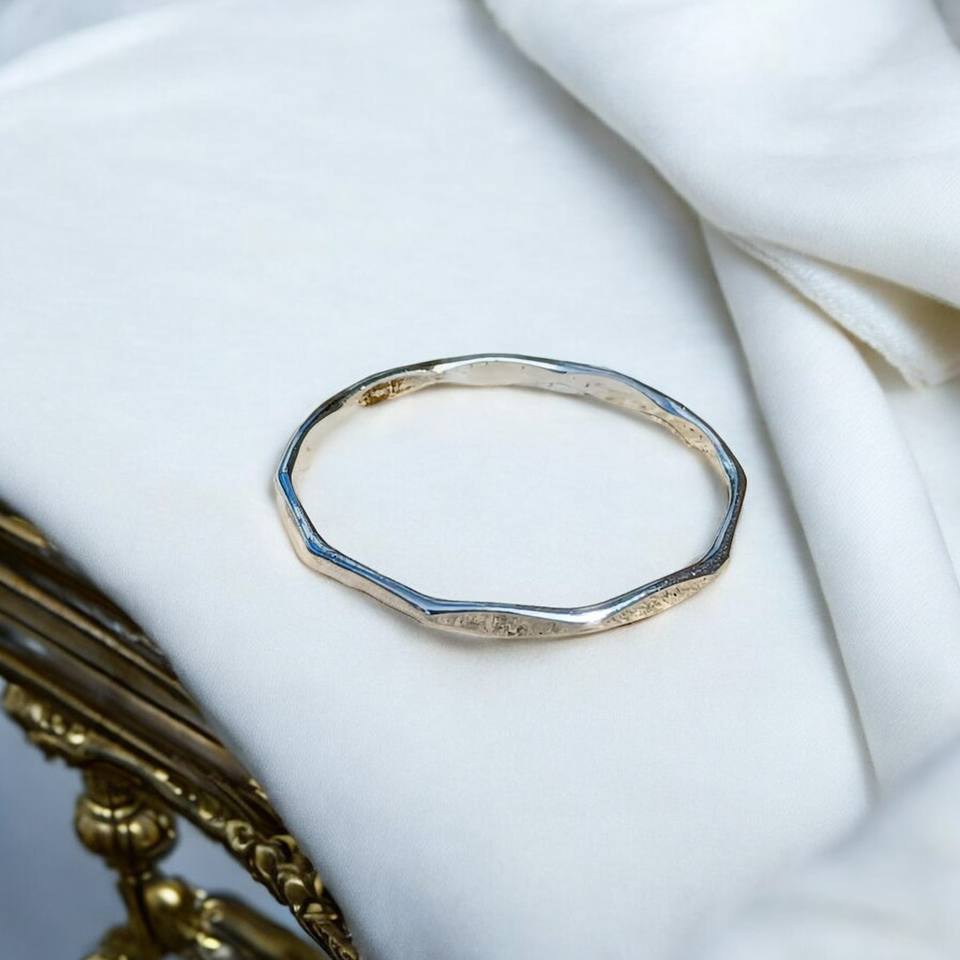 Designer Handmade 925 Sterling Silver Hammered Band Beautiful Gold Plated Engagement Ring with Bezel Setting for Girls