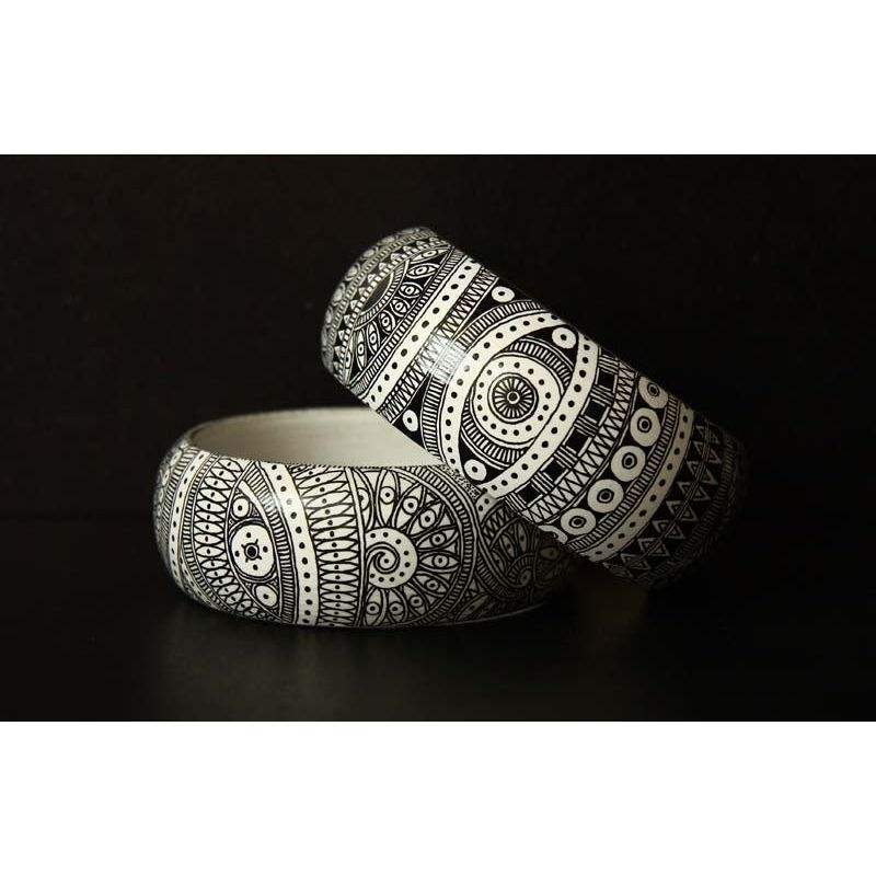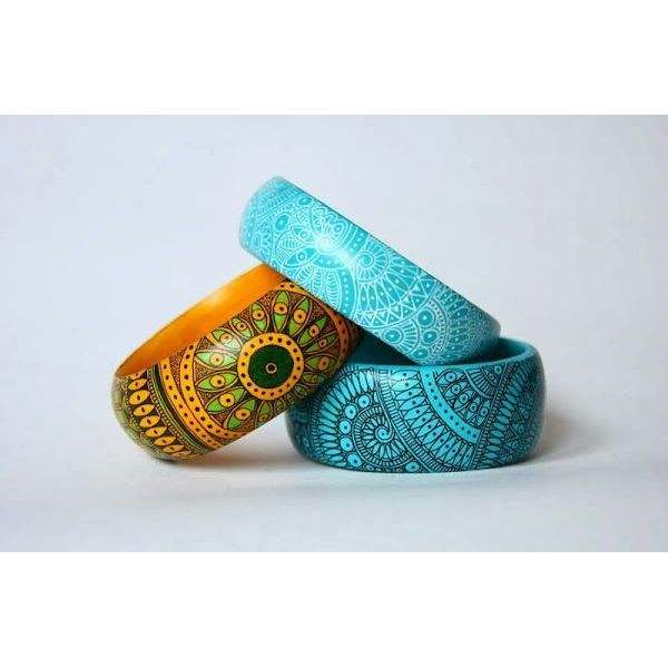 Designer Handmade Ethnic Jewelry for Women-Wooden Bangles Fashion Wear Painted Designer Styles Bamboo Crafts India RR